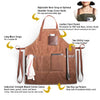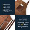 - Three pockets, including two generous 7” x 8” pockets for utensils and your beloved recipe notebook and a dedicated 5” x 5” leather pocket for your cell phone and pen.